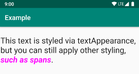 TextAppearance lets you define text-specific styling while leaving the style of a View available for other uses. Note, however, that if you define any text attributes directly on the View or in a style, those values override the TextAppearance values.