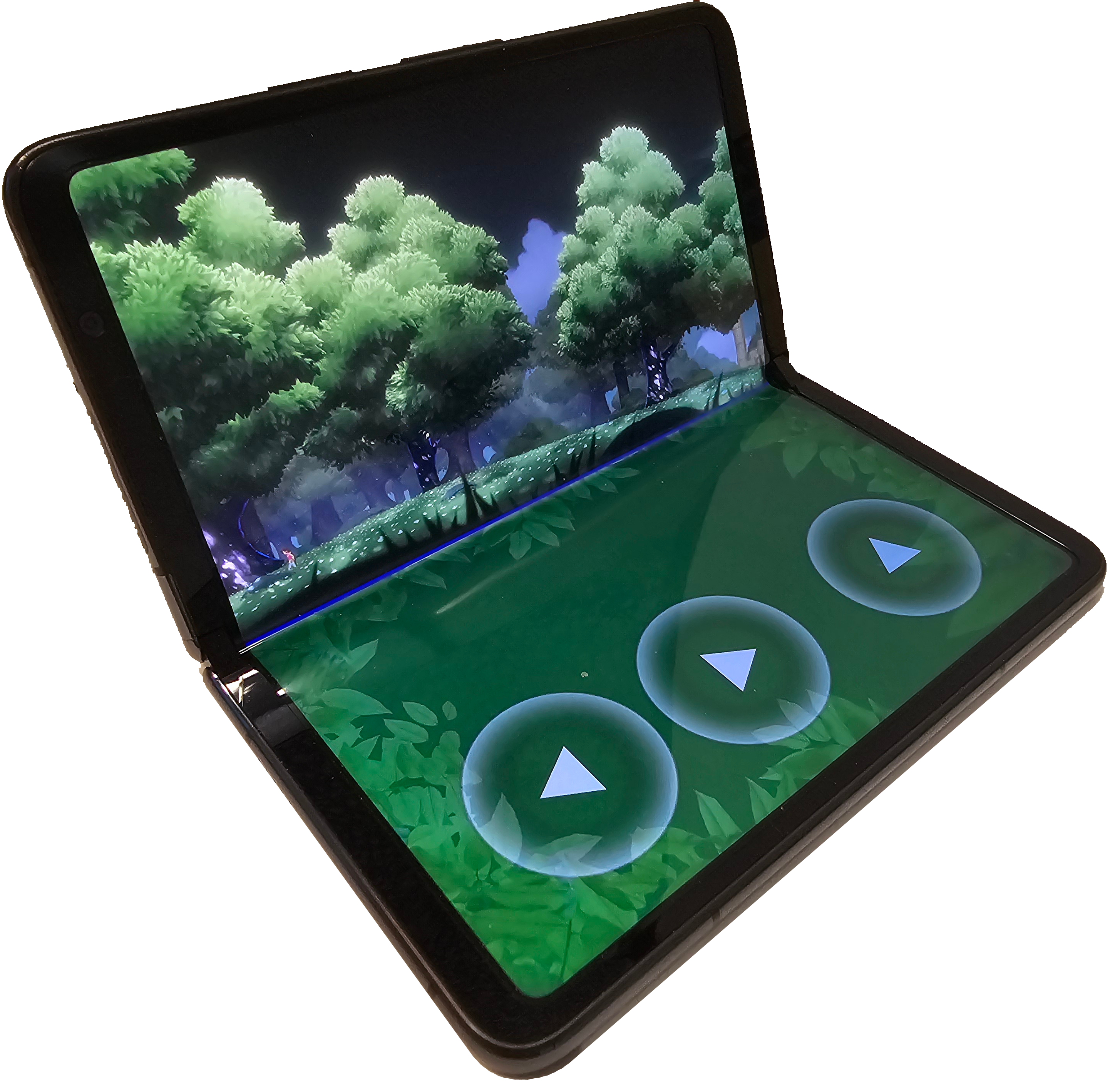 - Mainmenu: Starting scene, allows navigation to the other scenes and fully supports all device orientations, fold, unfold, and tabletop posture