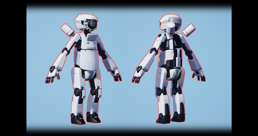 รูปที่ 4 การเปรียบเทียบจำนวนสามเหลี่ยมสำหรับกรณีการใช้งาน 2 กรณีที่แตกต่างกัน ทางด้าน ซ้าย หุ่นยนต์ CircuitVR มีสามเหลี่ยม 11,000 รูป ทางด้านขวา ทหารกองทัพ มีสามเหลี่ยม 360 รูป
