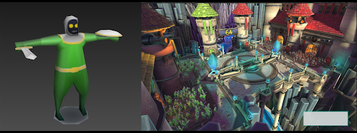 Figure 4. Triangle count comparison for two different use cases. On the left, the CircuitVR Robot has 11,000 triangles. On the right, the Armies Soldier has 360 triangles.