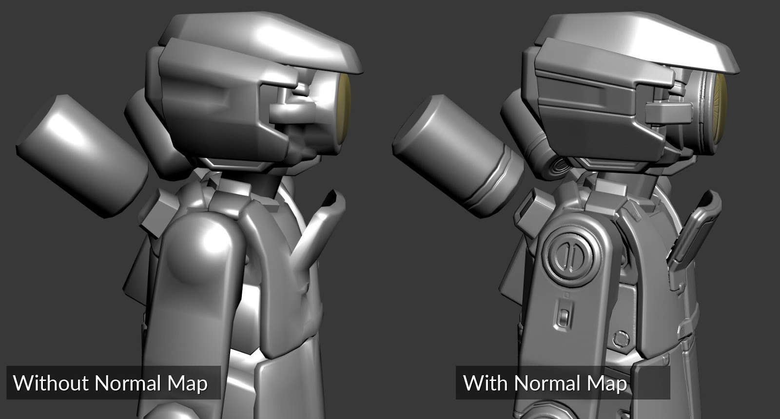 Figure 8. Comparison of a model with and without a normal map applied.