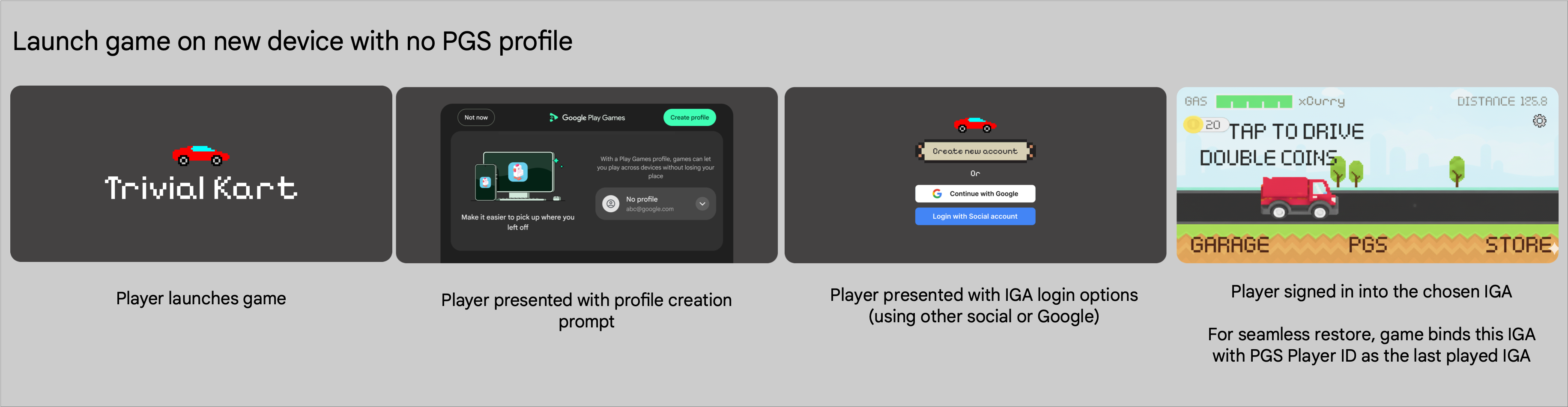 - The game also binds this chosen IGA to the PGS Player ID, marking it as the last played IGA for seamless restore.