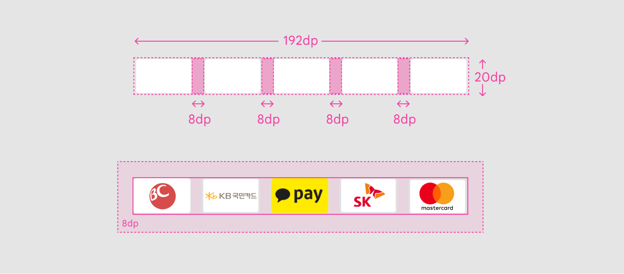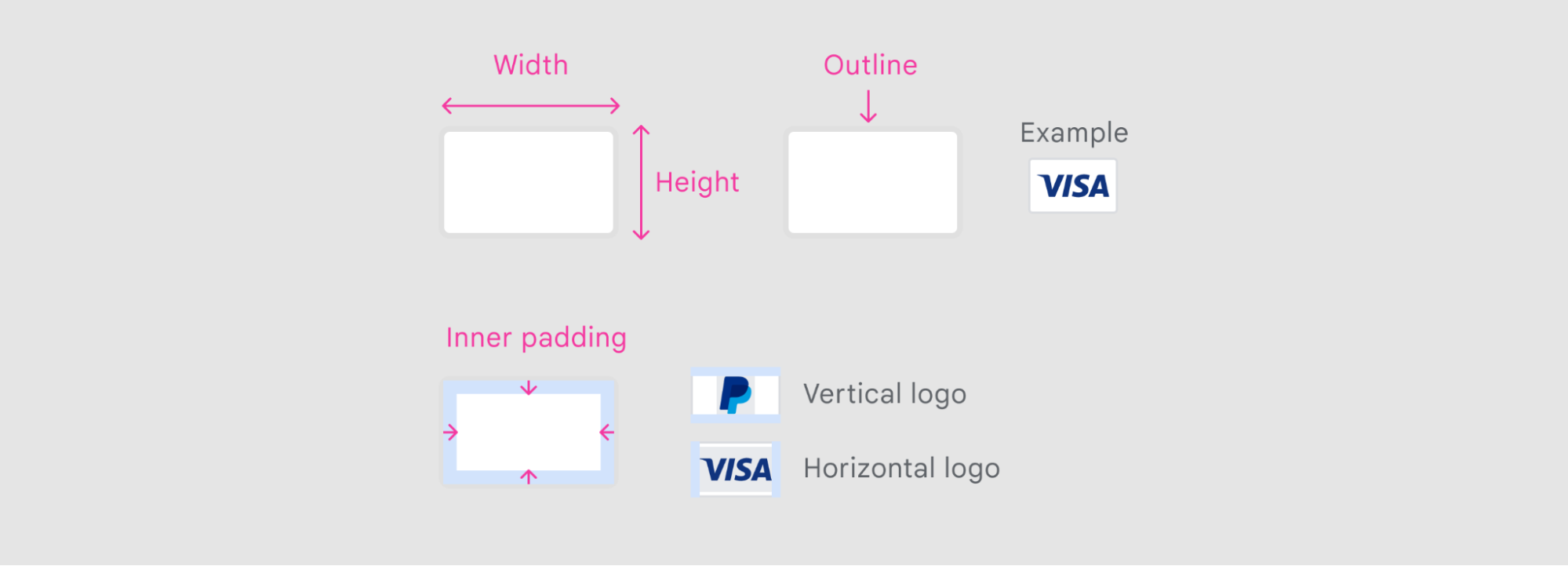 इमेज ऐसेट में शामिल किए गए पेमेंट के तरीके वाले कार्ड, साइज़, स्पेसिंग, और स्टाइल से जुड़ी इन गाइडलाइन के मुताबिक होने चाहिए.