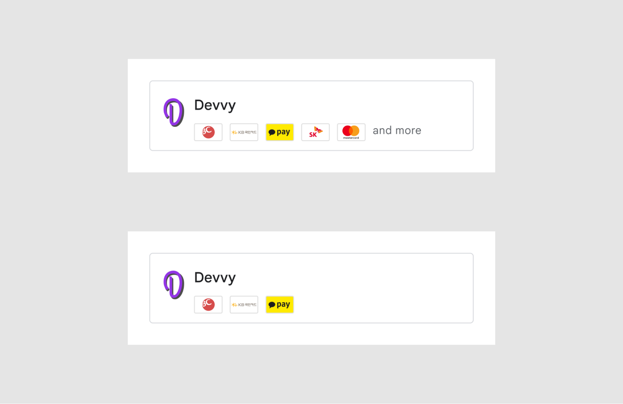 - पेमेंट के तरीके के लोगो, दिशा-निर्देशों के मुताबिक अपलोड करें. साथ ही, फ़ॉर्मैट से जुड़ी सभी खास बातों का पालन करें. इन दिशा-निर्देशों का पालन न करने वाली इमेज, लोगों की पसंद के हिसाब से स्क्रीन पर आपके अन्य बिलिंग सिस्टम के लिए नहीं दिखेंगी. (ध्यान दें: पेमेंट के तरीके के लोगो शामिल करना ज़रूरी नहीं है. हालांकि, ऐसा करने का सुझाव दिया जाता है.)