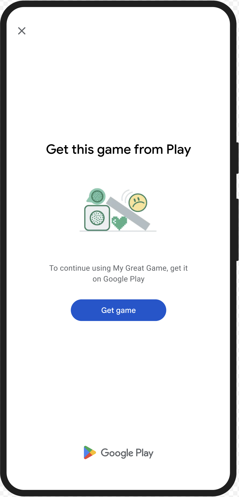 GET_LICENSEDdialog to prompt the user to acquire the genuine app from Google Play. This single dialog addresses both scenarios:- For an unlicensed user, it grants them a Play license. This enables the user to receive app updates from Google Play.