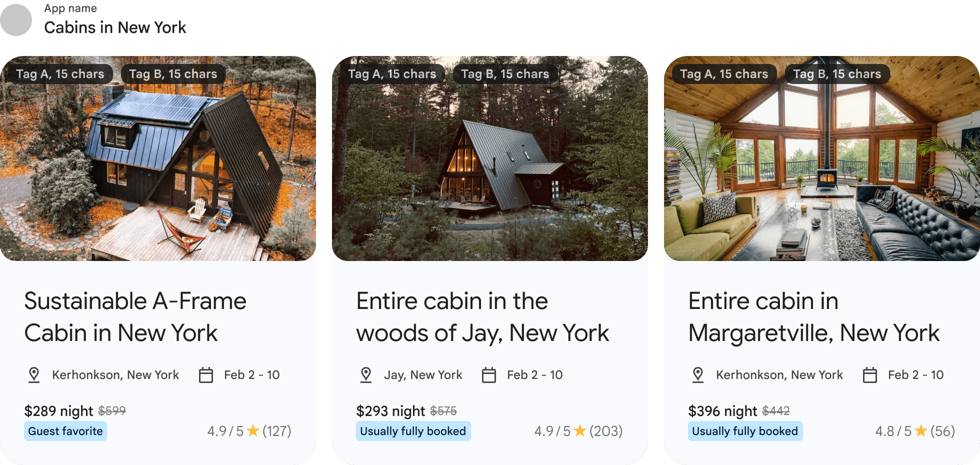 ArticleEntity: ArticleEntity mewakili rekomendasi untuk konten berbasis teks yang terkait dengan perjalanan & acara. Fitur ini dapat digunakan untuk artikel, postingan blog, konten pemasaran, cuplikan berita, dll.