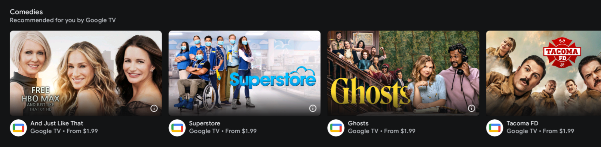 पहली इमेज. यह टीवी, फ़िल्में वगैरह एक ही जगह पर देखने की सुविधा का यूज़र इंटरफ़ेस है. इसमें किसी एक पार्टनर के कॉन्टेंट में से सुझाव दिखाए जा रहे हैं. इकाई: इसमें एक कॉन्टेंट दिखता है. इकाई, कोई फ़िल्म, टीवी शो, टीवी सीरीज़, लाइव वीडियो वगैरह हो सकती है. इकाई के काम करने वाले टाइप की सूची देखने के लिए, इकाई का डेटा दें सेक्शन देखें.
