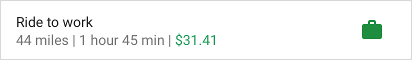 नीचे मौजूद 'काम करने के लिए राइड करें' पंक्ति में, काम करने की दूरी डाइनैमिक तौर पर तय की गई है साथ ही, ऐसा भी हो सकता है कि यह सुविधा तुरंत उपलब्ध न हो. उदाहरण कोड में बताया गया है कि सामग्री लोड होने के दौरान प्लेसहोल्डर के रूप में सबटाइटल:
