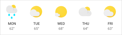 कॉन्टेंट की लाइन के उदाहरण यहां दी गई इमेज में दिखाए गए हैं. ध्यान दें कि स्लेटी रंग के बॉक्स संभावित आइकॉन और पैडिंग लोकेशन दिखाएं: