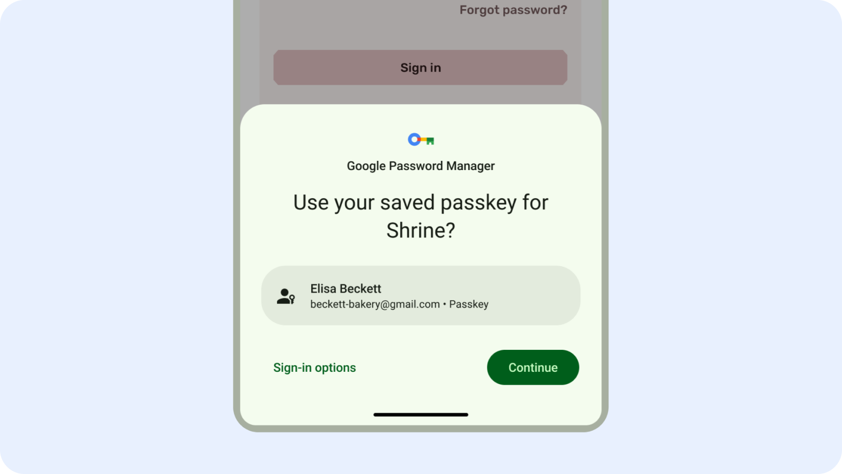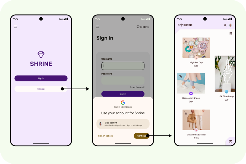 A central hub for various sign-in methods, including passkeys, Credential Manager helps users sign in to your app with a single tap. This eliminates the need for users to remember which method they have to use, and instead focus on choosing the right account.