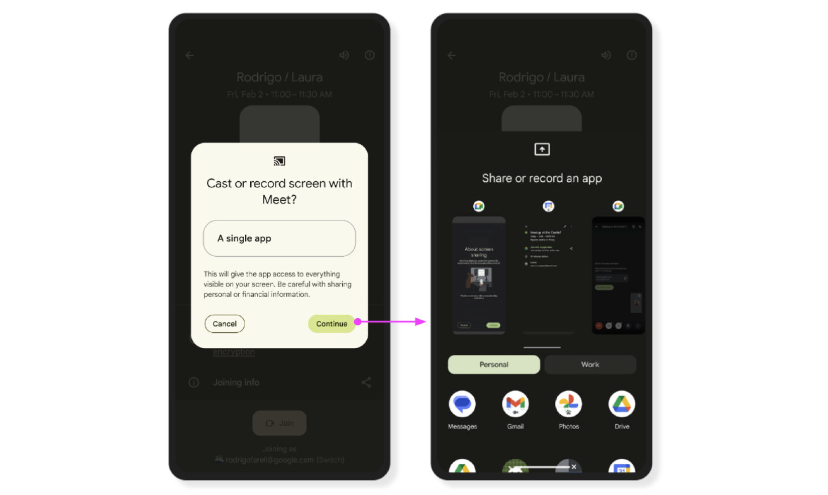 As of Android 15, Screen Sharing now defaults to sharing just a single app. Users can adjust this setting to share their whole screen, if needed.