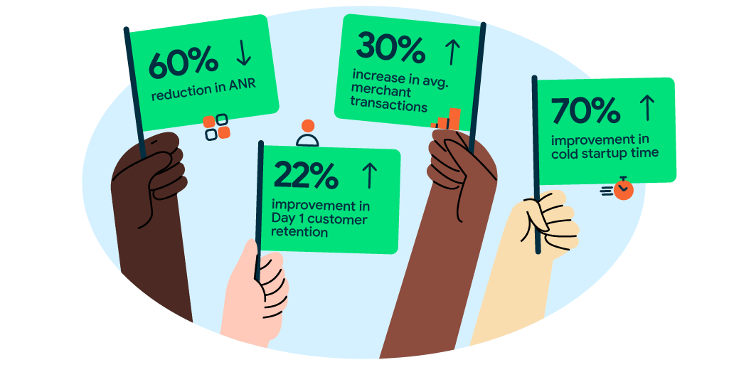 من خلال تقليل أخطاء ANR وتحسين أوقات بدء تشغيل تطبيق مثل OkCredit، كان العملاء سعداء، بالإضافة إلى زيادة معدّل معاملات التجّار على هذا التطبيق.