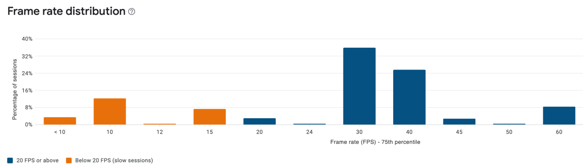 Ogni bucket rappresenta la percentuale di sessioni in cui il 75% dei frame è stato più veloce dell'etichetta del bucket.