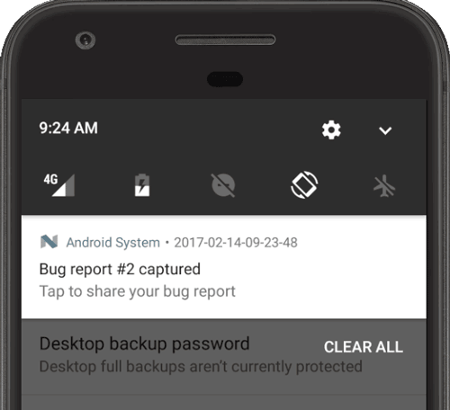 - To share the bug report, tap the notification.