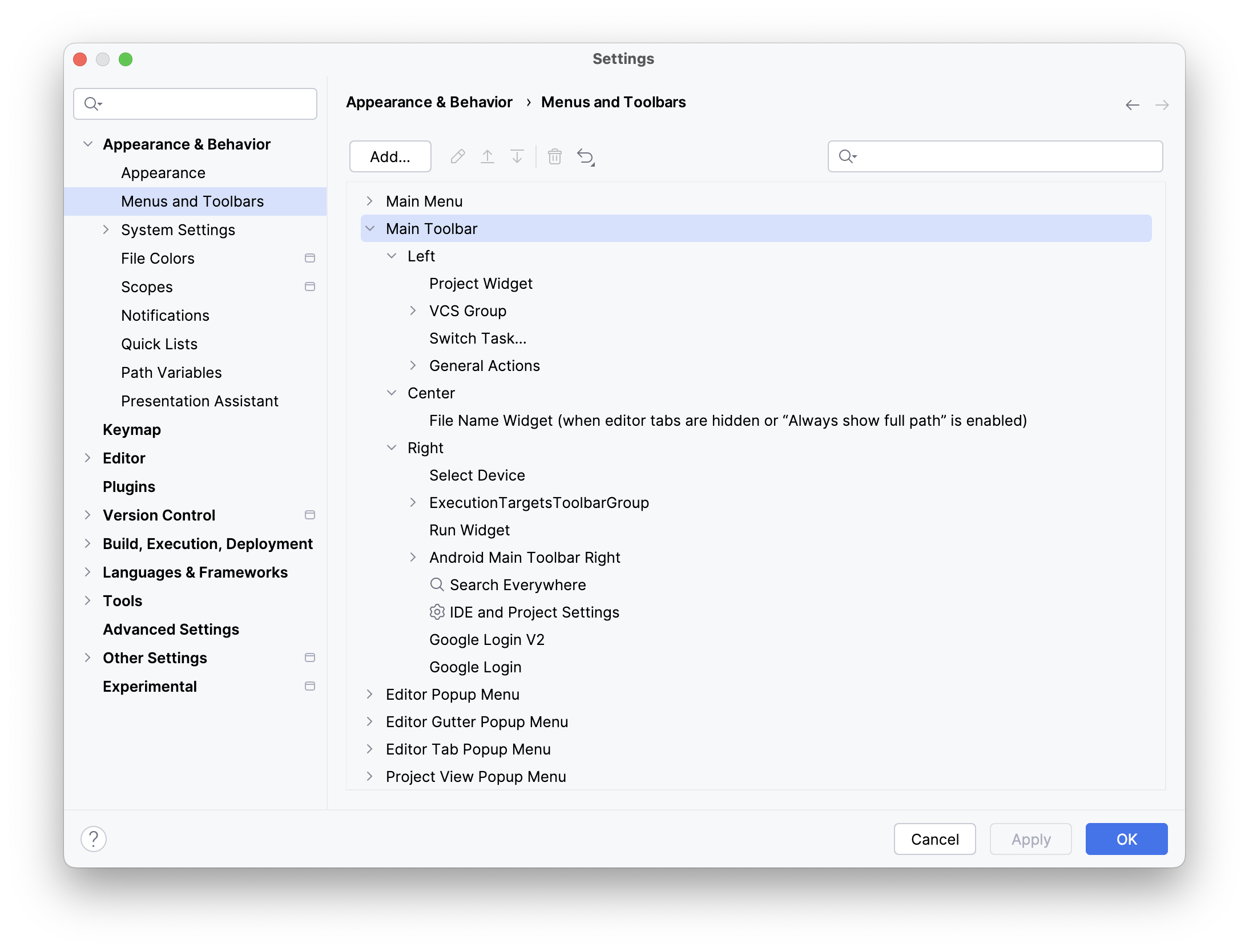UI ใหม่มีแถบเครื่องมือหลักที่ลดความซับซ้อนและให้ความสำคัญกับการดำเนินการที่ใช้บ่อยที่สุด เช่น การเลือกอุปกรณ์ที่ใช้งานอยู่ การจัดการการควบคุมเวอร์ชัน และการเปลี่ยนโปรเจ็กต์ วิธีนี้ช่วยให้คุณใช้เวลาค้นหาเครื่องมือน้อยลงและใช้เวลาเขียนโค้ดได้มากขึ้น