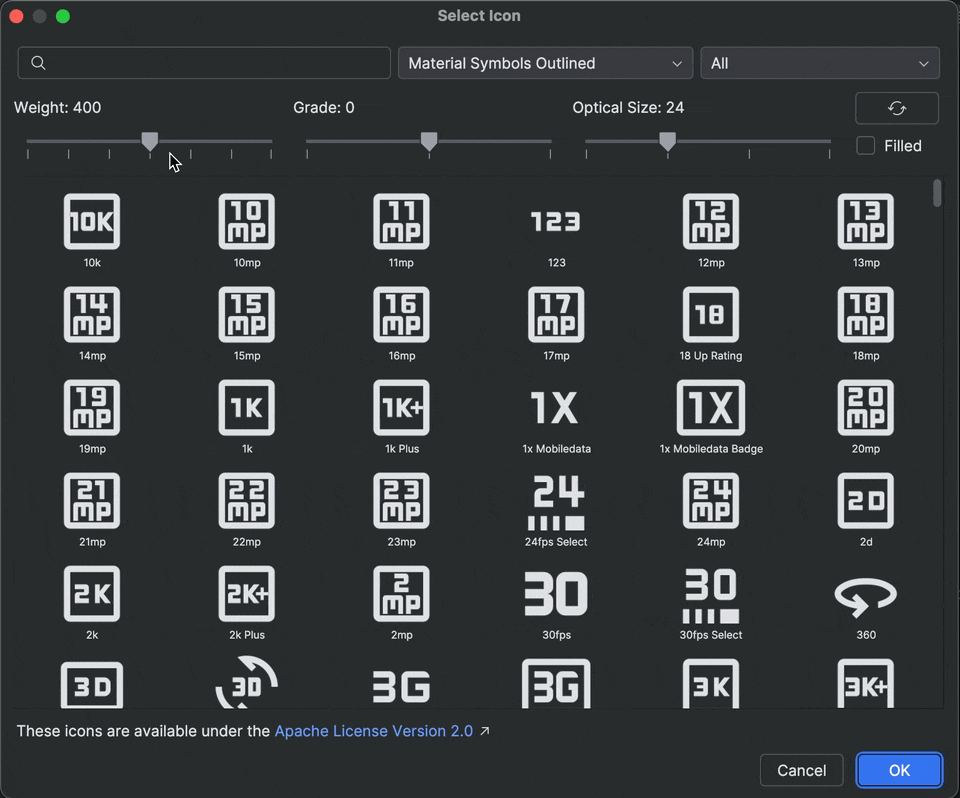 Anda kini dapat menyesuaikan atribut ikon seperti ketebalan, gradasi, dan ukuran optik langsung di studio agar sesuai dengan desain Anda. Alat ini akan selalu memuat simbol terbaru, sehingga aset Anda tetap baru tanpa perlu upaya ekstra. Coba di build canary terbaru.