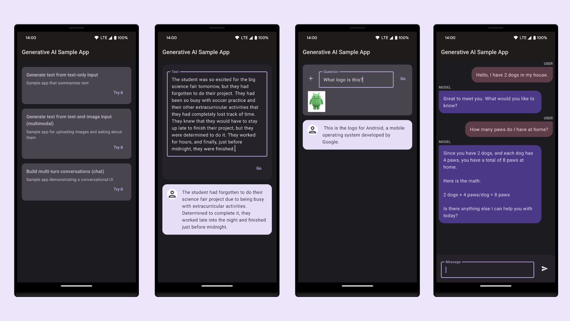 Попробуйте возможности чата, текстовых сообщений и многомодального интерфейса Gemini в демонстрационном приложении.