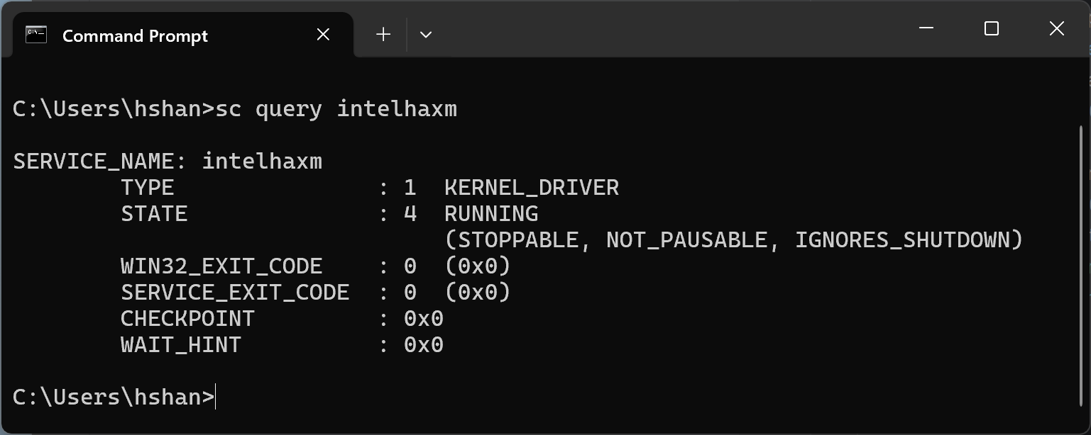 sc query intelhaxm