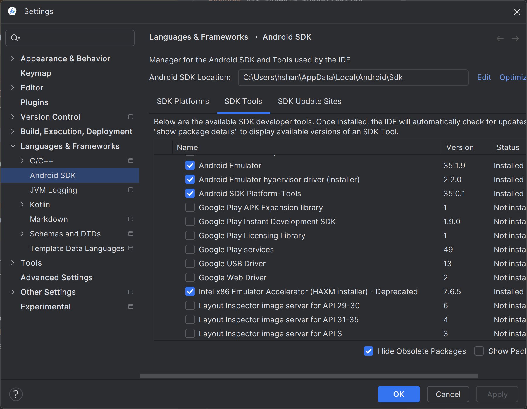 - Click the SDK Tools tab and select Android Emulator hypervisor driver.