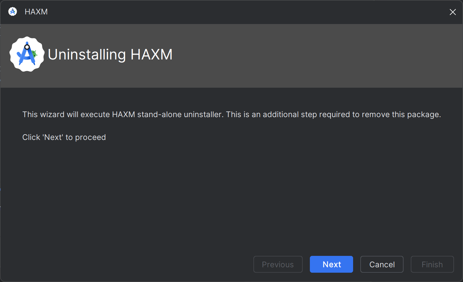 When Intel HAXM is successfully uninstalled, you should see the following.