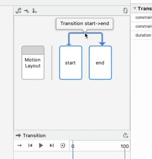 接著以編輯 ConstraintLayout 的方式編輯開頭或結尾 ConstraintSet 的限制條件和屬性。
