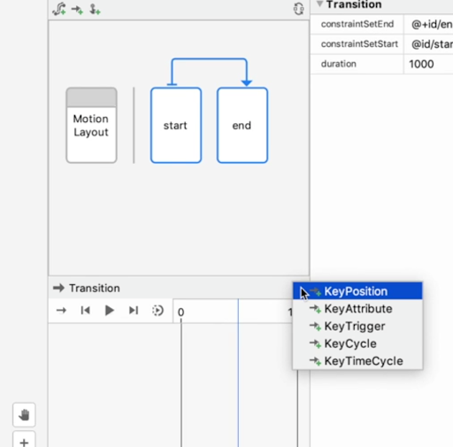 接著在「Transition」時間軸窗格中,按一下右上角並選取「KeyPosition」: