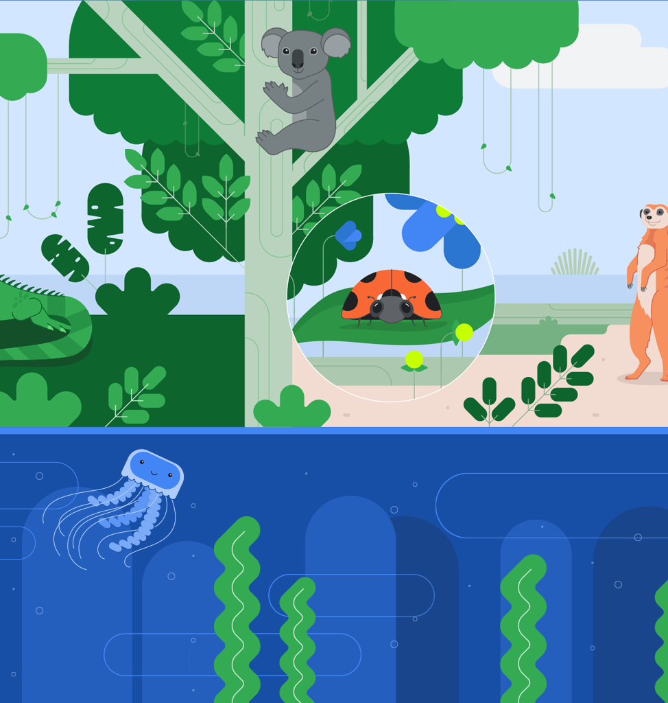 보세요. 자연 서식지에 있는 Android 스튜디오의 인기 동물입니다.