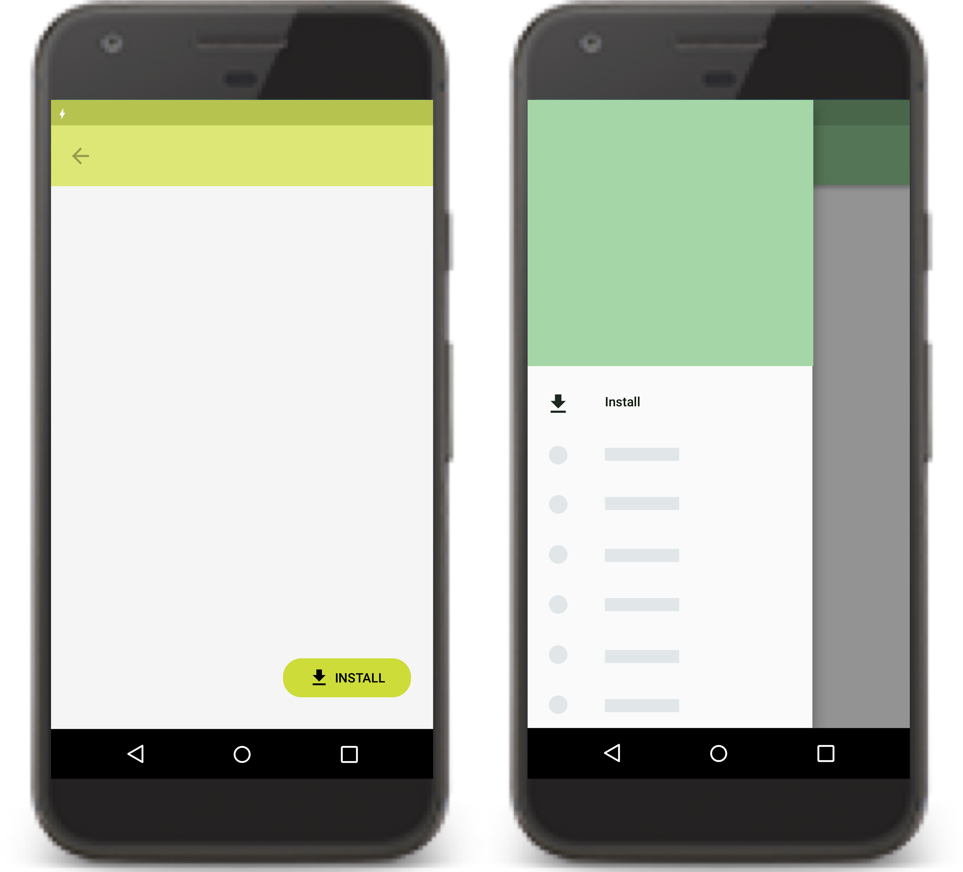 ऐप्लिकेशन के यूज़र इंटरफ़ेस (यूआई) में इंस्टॉल बटन शामिल करके, उनका सही तरीके से इस्तेमाल करें. मटीरियल डिज़ाइन वाला "ऐप्लिकेशन डाउनलोड करें" आइकॉन और इंस्टॉल करने वाले बटन के लिए, इंस्टॉल करें लेबल इस्तेमाल करना चाहिए.
