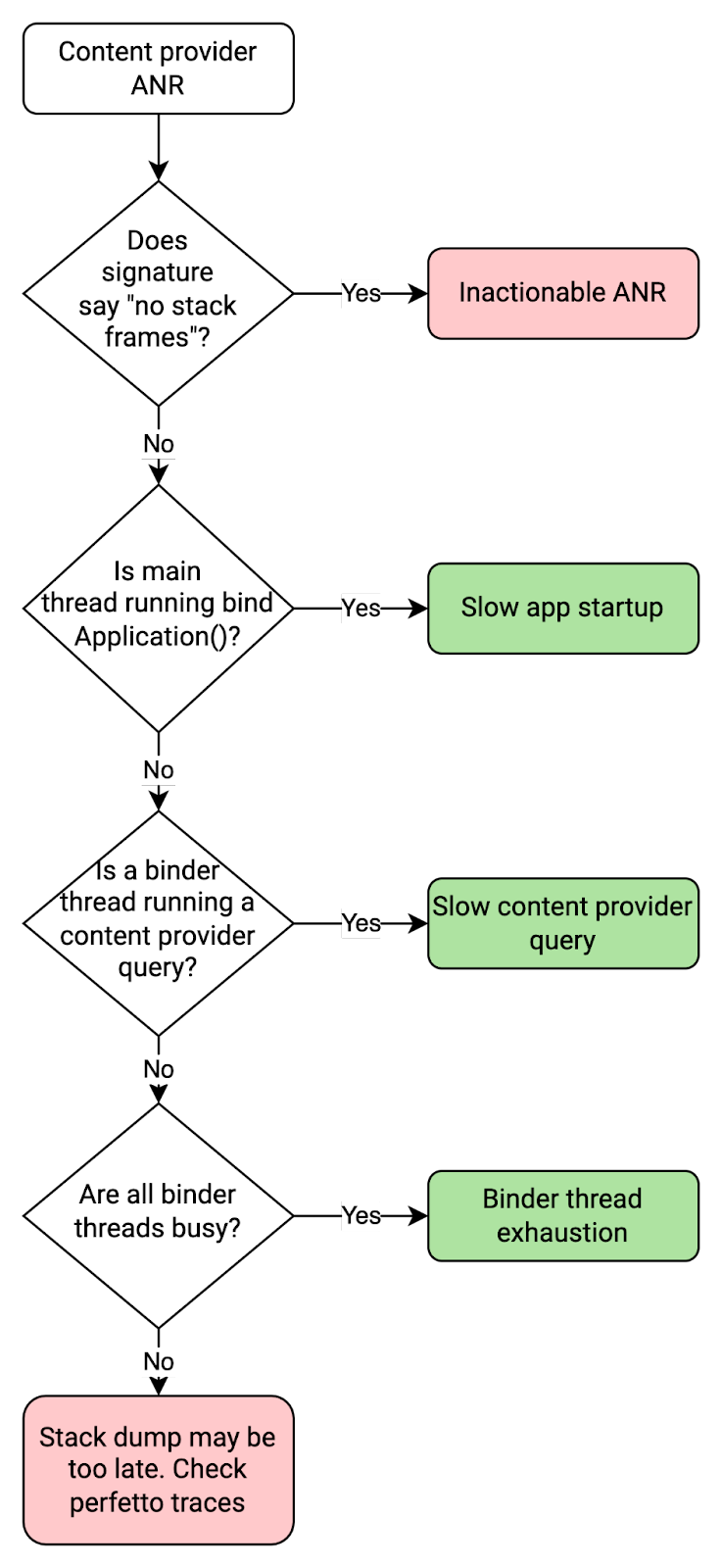 The following flow chart describes how to debug a content provider ANR: