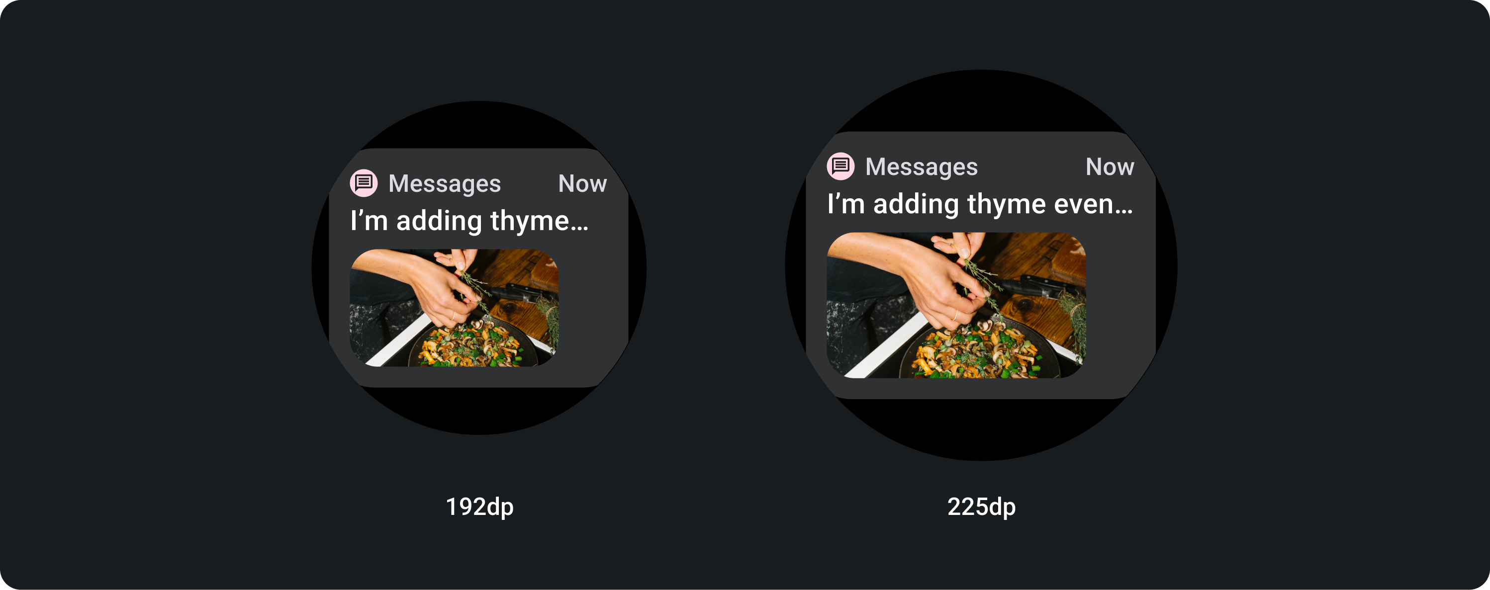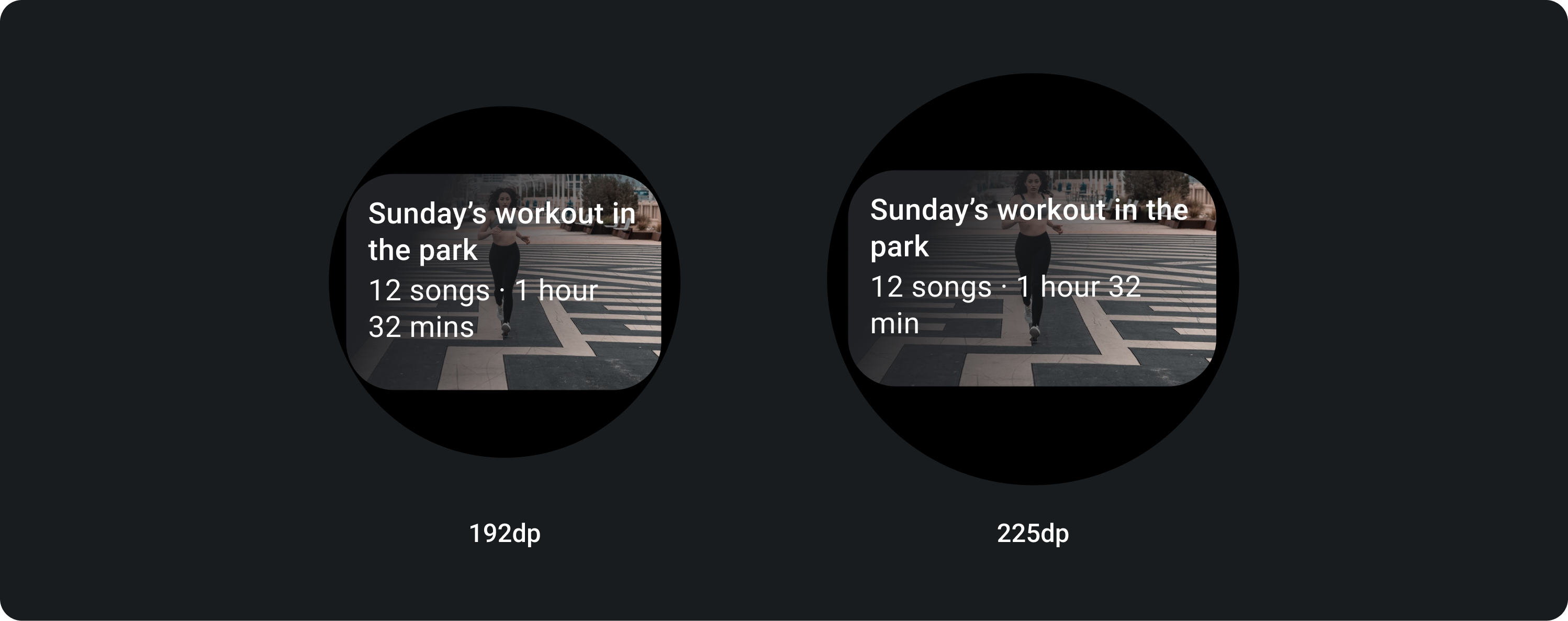 Auf größeren Bildschirmen ist eine zusätzliche Textzeile für den Fließtext zulässig. Damit mehr vom Bild zu sehen ist, fügen Sie am unteren Rand einen vergrößerten Abstand von 24 dp hinzu.
