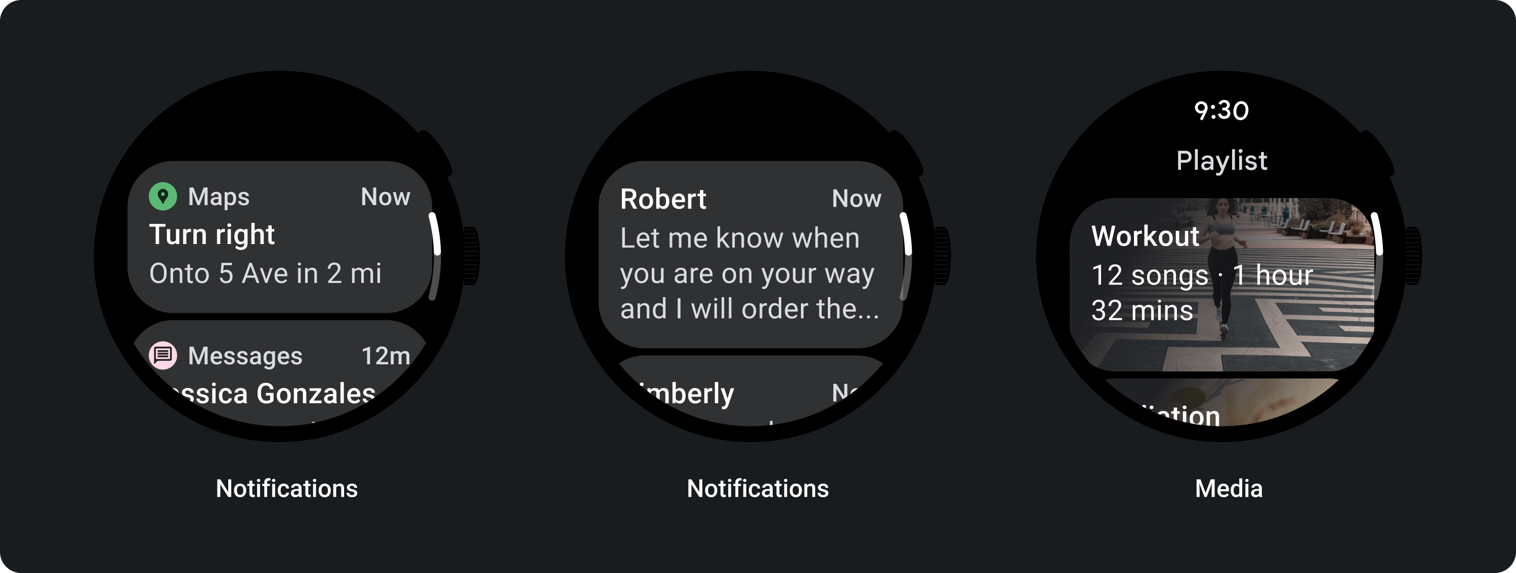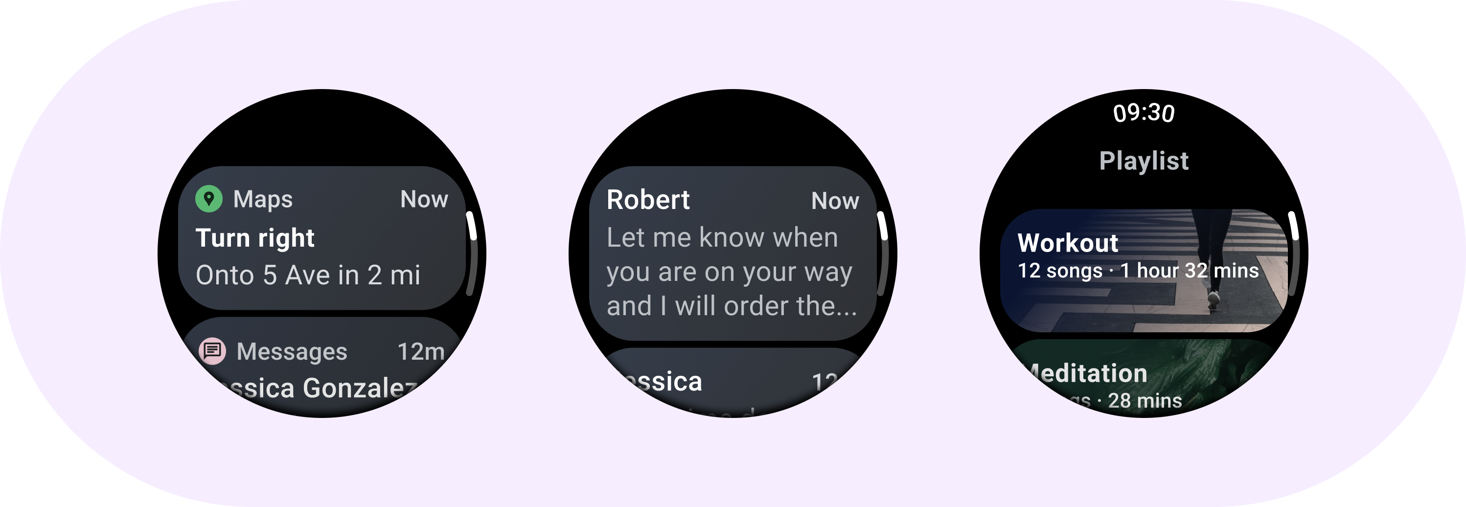 Verwenden Sie Titelkarten, um Informationen in einer App anzuzeigen, z. B. eine Nachricht. Titelkarten haben ein Layout mit drei Slots, das einen Titel, ein optionales Zeitfeld und den relevanten Inhalt enthält – entweder ein Bild oder ein Text.