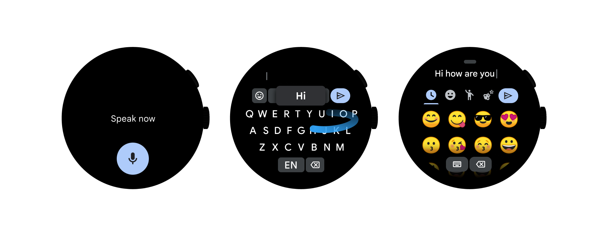 Wear comes with the system default Input Method Editor (IME) and opens up the IME APIs for third-party developers to create custom IMEs for Wear. The IME APIs used for Wear devices are the same as other form factors, though usage is slightly different due to limited screen real estate.