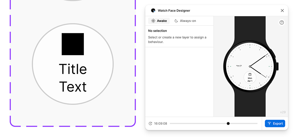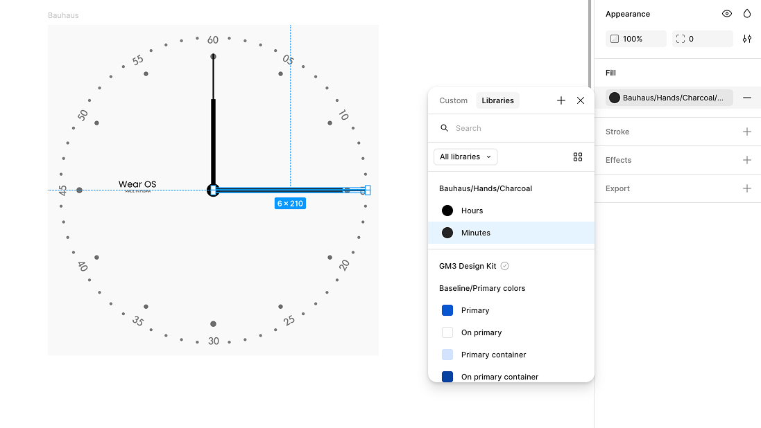 Desainer Tampilan Jam menyertakan dukungan untuk tema warna menggunakan gaya Figma.