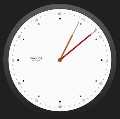 Pertimbangkan kasus saat, dengan tampilan jam berikut, Anda ingin mengizinkan pengguna menyesuaikan warna jarum jam dan pelat jam: