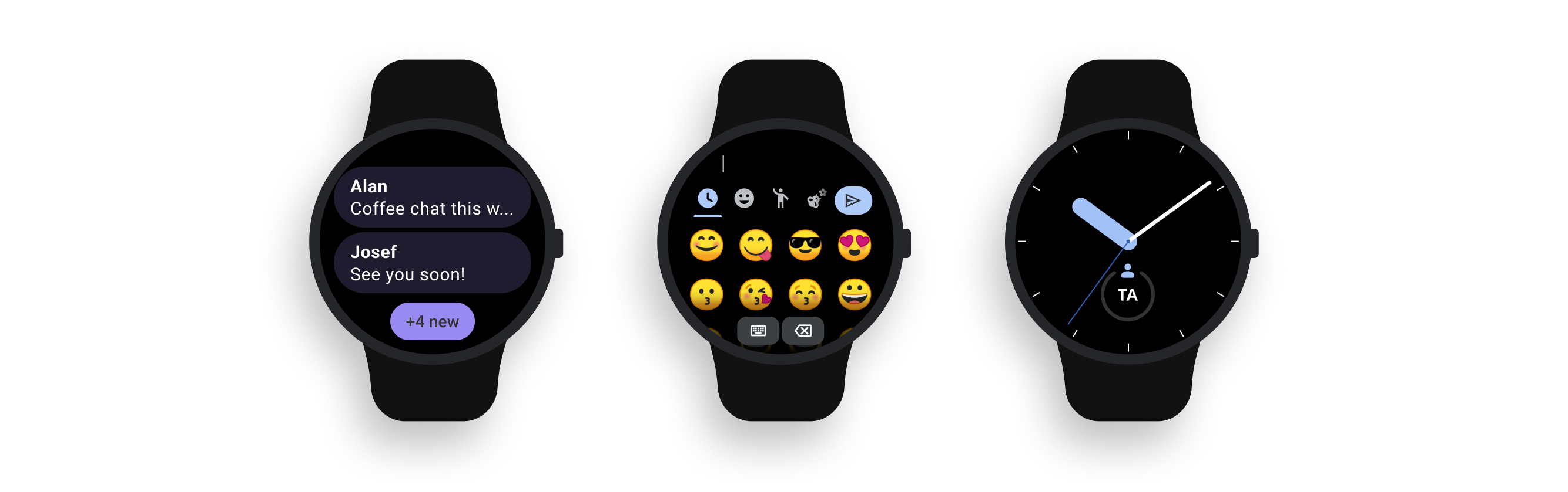 As pessoas adoram se comunicar em vários formatos, por isso o Wear OS permite oferecer diferentes mecanismos de entrada, como emojis, voz e texto.